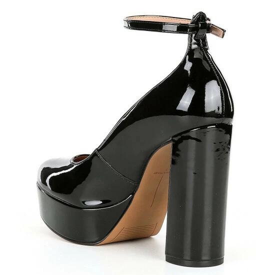 From Chelsea & Violet, the Mia Patent Ankle Strap Platform Pumps feature: