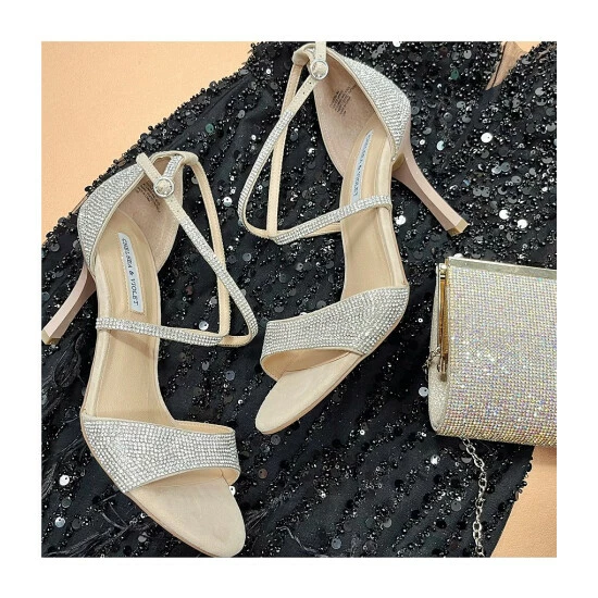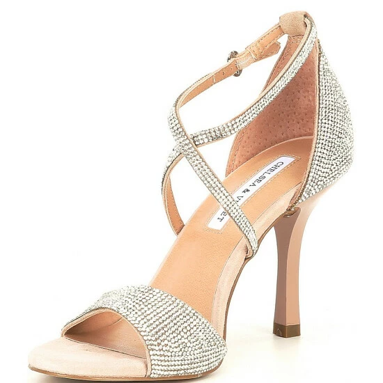 From Chelsea & Violet, the Queen Rhinestone Heel Sandals feature: